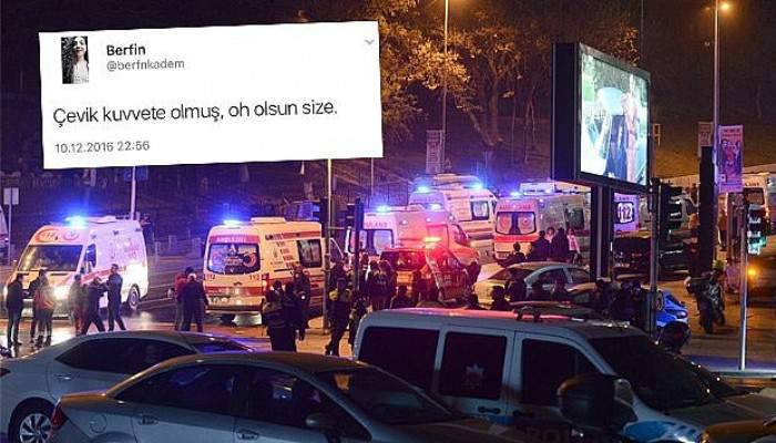 29 kişinin şehit olduğu hain saldırı sonrası Berfin Kadem isimli Twitter kullanıcısı, "Çevik kuvvete olmuş, oh olsun size" şeklinde paylaşımda bulundu.