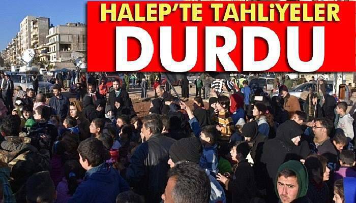 Halep’te dün başlayan sivillerin tahliye işlemi geçtiğimiz dakikalara kadar devam ediyordu. Son 24 saatte 7 binden fazla kişi Doğu Halep’ten tahliye edildi. Ancak Suriyeli yetkililer, tahliye işlemlerinin engellemeler nedeniyle durdurulduğunu açıkladı. Açıklamada, tahliyelerin durdurulmasının Suriye hükümeti tarafından alındığı bildirildi.