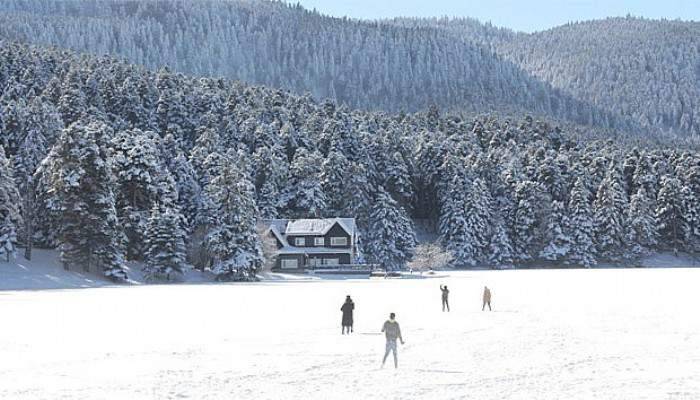 Binlerde tatilciye ev sahipliği yapan Gölcük Tabiat Parkı karla kaplı çam ormanlarıyla büyülerken, gece eksi 20’ye düşen hava sıcaklığı sonrasında tabiat parkında bulunan göl dondu. Tatilciler tabelalarla yapılan uyarılara göl üzerinde yürüyüş yaparak bol bol fotoğraf çektirdi.
