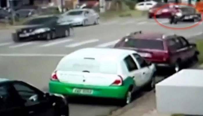 Brezilya’da kaydedilen görüntülerde, kırmızı ışıkta bekleyen motosiklet sürücüsü yeşil ışığın yanmasıyla harekete geçiyor.