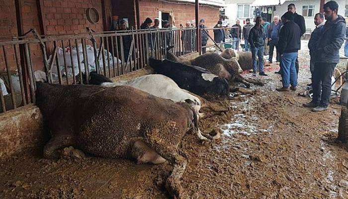 Edinilen bilgiye göre, Irgıllı Mahallesinde Halit Özdemiroğlu tarafından sağım için süt makinesine bağlanan inekler, makine çalışır çalışmaz elektrik akımına kapıldı. İneklerden 4 tanesi olay anında telef olurken bir inek ölmeden önce Özdemiroğlu tarafından kesildi. İneklerin hepsinin de gebe olduğu belirtilirken yaşanan zararın yaklaşık 50 bin TL olduğu ifade edildi.