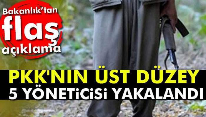İçişleri Bakanlığı, terör örgütü PKK'nın üst düzey 5 yöneticisinin yakalandığını açıkladı.