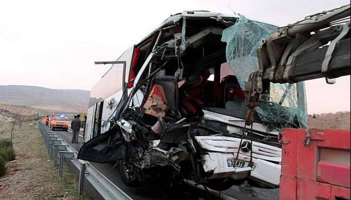 Kaza, bu sabah Gaziantep-Şanlıurfa Otoyolu'nun 22. kilometresinde yaşandı. Edinilen bilgiye göre, Hakim Ö. idaresindeki Mardin-Mersin seferini yapan 33 BYB 66 plakalı yolcu otobüsü kömür yüklü 73 EA 749 plakalı tıra arkadan çarptı. Kazanın etkisiyle yolcu otobüsünde bulunan 8 kişi yaralandı.