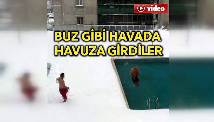 Beylikdüzü'nde bir sitede yaşayan üç arkadaş yoğun kar yağışı altında havuza girdi. Hava durumu -2'yi gösterirken 3 arkadaş üzerlerini çıkartarak havuza koştu. Buz gibi suya giren 3 kafadarın havuza girmesiyle çıkması bir oldu. Soğuk havada havuza giren arkadaşları gören vatandaşlar ise şoke oldu. 3 arkadaşın soğuk hava nedeniyle dışarıda duramadıkları ve koşarak siteye girdikleri görüldü.