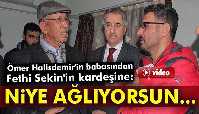 Şehit babası Halisdemir, şehit polisin kardeşleri Vedat ve Ahmet Sekin’e uzun uzun sarıldı. Şehidin kardeşlerinin gözyaşı döktüğünü gören baba Halisdemir, "Bu çocuklar bizlere çok büyük şeref verdi. Niye ağlıyorsun. Ben seviniyorum, büyük bir şeref verdiler bize. Türkiye’nin bayrağına, toprağına, vatanına sahip olan çocuklarımız var. Çok şükürler olsun bize. Ben çok ağladım, çok destanlar yazdım. Hasandağı’na da çıktım ama sonradan toparlandım" diye konuştu.