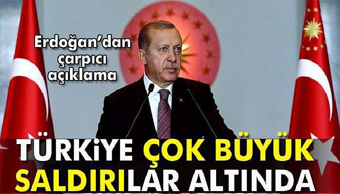Cumhurbaşkanı Erdoğan, Cumhurbaşkanlığı Külliyesi’nde düzenlenen Kaymakamlar Toplantısı’nda konuştu. Erdoğan, Türkiye’nin içeride ve dışarıda çok büyük saldırı altında olduğunu vurguladı. Bu saldırıların Türkiye’nin zayıf bir ülke olmasından dolayı kaynaklanmadığını anlatan Erdoğan, “Güçlü ve güçlenen bir ülke olduğumuz için bu saldırılar yapılıyor. Suriye ve Irak’ta yaşanan her gelişme ülkemizi doğrudan ilgilendiriyor. Bu ülkelerde ortaya çıkan insani krizlere duyarsız kalmamız kesinlikle söz konusu olamaz. Tüm dünya sırtını dönse, kapılarını kapatsa dahi bu bölgede yaşayan insanlarla ortak geçmişimizi ve müşterek kültürümüzü unutup biz de aynı yola başvuramayız” diye konuştu.