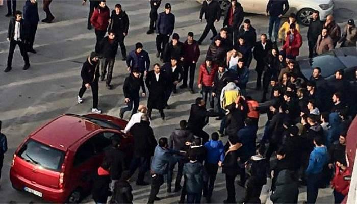 Olay Erzurum’un Yakutiye ilçesi Cumhuriyet Caddesi üzerinde bulunan Kızılay İş Merkezi önünde meydana geldi. Alınan bilgiye göre, iki grup arasında yoldan geçerken ‘Niye yan bakıyorsun’ nedeni yüzünden başlayan tartışma tekme tokatlı kavgaya dönüştü. Birbirlerine tekme tokat saldıran iki grup vatandaşların araya girmesiyle kavgayı sonlandırdı.