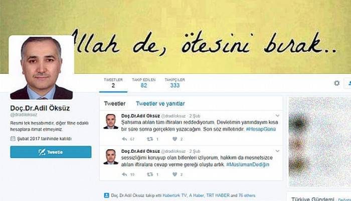 Twitter hesabından, " Sessizliğimi koruyup olan bitenleri izliyorum, hakkım da mesnetsizce atılan iftiralara cevap verme gereği oluştu artık. Şahsıma atılan tüm iftiraları reddediyorum. Devletimin yanındayım kısa bir süre sonra gerçekleri yazacağım" mesajı paylaşıldı. Adil Öksüz adına açılan hesabın da Fuat Avni gibi propaganda amaçlı kullanılıp kullanılmayacağı merak konusu oldu.