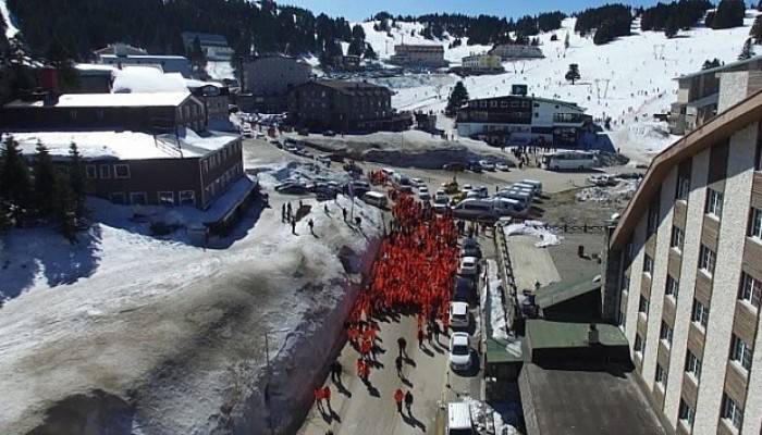 Yürüyerek Ağaoğlu My Mountain otelinin önüne gelen Ağaoğlu ailesi toplu fotoğraf çektirerek bu anı ölümsüzleştirdi.