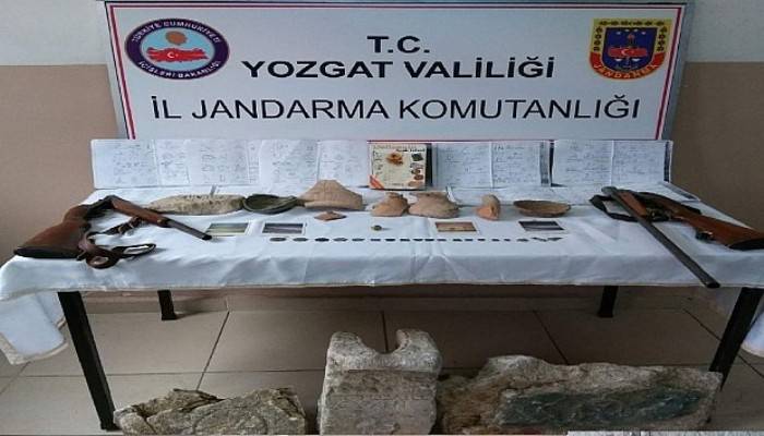 Yozgat İl Jandarma ekipleri, ihbar üzerine Çayıralan'da tarihi eser parçalarının bulunduğu ev ve iş yerlerine operasyon düzenlendi. Operasyonda ev ve iş yerlerinde yapılan aramada 1 adet lov taşı, 2 adet Roma dönemine ait mezar siteli, 1 adet sutunçe parçası, 13 adet farklı dönemlere ait sikke, 4 adet Osmanlı dönemine ait para, 2 adet kolye ucu, 1 adet pirinçten yüzük, 1 adet kemer tokası parçası, 6 parça pişmiş toprak seramik, 1 adet bakırdan kap, 2 adet değirmen taşı parçası, 1 adet el değirmeni parçası olmak üzere 42 parça tarihi eser ele geçirdi.