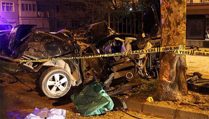 Kaza Gölcük Donanma Mahallesi D-130 Karayolu İzmit istikametinde sabah 04.30 sıralarında meydana geldi. Edinilen bilgiye göre Haşmet K.(28) idaresindeki 27 V 5630 plakalı otomobil, aşırı sürat nedeniyle Donanma ışıklar mevkiinde kontrolden çıktı. Kontrolden çıkarak savrulan otomobil yok kenarındaki çınar ağacına çarparak parçalandı. Çarpmanın etkisiyle aracın motoru 150 metre öteye savrulurken, araç içindeki sürücü Haşmet K. ve Veli B. Bulundukları yerde sıkıştı. Kazayı gören çevredeki insanların haber vermesi üzerine olay yerine polis, 112 Acil Sağlık ve itfaiye ekipleri sevk edildi.