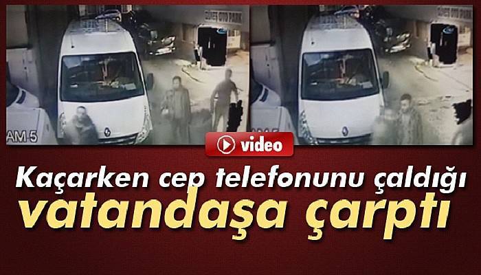 Kaçarken cep telefonunu çaldığı vatandaşa çarptı