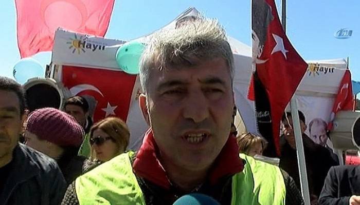 Cumhurbaşkanı Erdoğan’ın ’evet’ çadırını ziyaret ettiğini söyleyen Coşkun, "Çıkmak üzereyken kendisine bir çay ikram etmek istediğimizi söyledim. Kendisi zamanının olmadığını söyledi. Ben de ’en azından bir suyumuz için sayın Cumhurbaşkanım’ dedim. Bayan arkadaşlarımızın bir tanesinin sorduğu soru üzerine ’neden siz hayır diyorsunuz’ dedi. Bayan arkadaşımız da kendisini yeterince güvende hissetmediği için ’hayır’ diyeceğini söyledi. Bir cumhurbaşkanının vermesi gereken doğal ve mantıklı bir cevap verdi. Suyunu içti, aramızdan ayrıldı" diye konuştu.
