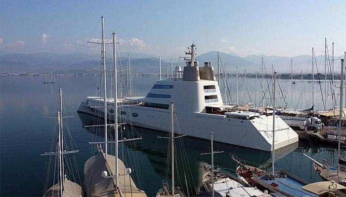 Dünyanın en büyük yatlarından "A", sabah saatlerinde Fethiye Körfezi'nden giriş yaparak limana yanaştırıldı. Dubai’den Fethiye'ye geldiği belirtilen lüks yatın akaryakıt alım işlemi gün boyu sürdü. Bermuda bayraklı 2008 yapımı yatın sahibi Andrey Melnichenko’nun ise yatta olup olmadığıyla ilgili bilgi verilmedi. İskeledeki mega yatı bazı vatandaşlar cep telefonlarıyla görüntülerken kimide önünde bol bol fotoğraf çektirdi.