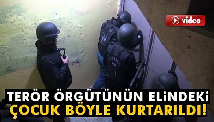 Polis helikopterinin de destek verdiği operasyonda, alıkonulan B.A. isimli çocuk kurtarılırken, polis ekiplerine mukavemette bulunan ve örgüt içerisinde faaliyette bulunduğu belirlenen 7 şüpheli gözaltına alındı. Adreslerde yapılan aramalarda çok sayıda örgütsel doküman ve öldürülen teröristlerin fotoğraflarının bulunduğu afişler ele geçirilirken, operasyon anı ise polis kamerasına yansıdı.