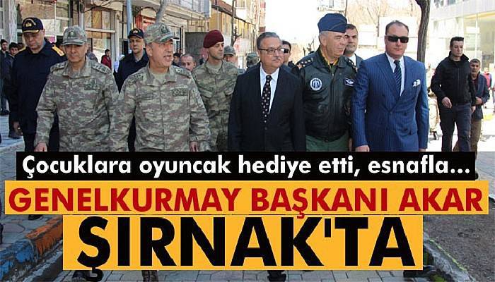 Şırnak 23. Jandarma Sınır Tümen Komutanlığına inen Genelkurmay Başkanı Orgeneral Akar ve kuvvet komutanlarını, Vali Ali İhsan Su, 23. Jandarma Sınır Tümen Komutanı Tümgeneral Aydoğan Aydın, İl Jandarma Komutanı Jandarma Albay Hünkar Keleş ve Çakırsöğüt 1. Jandarma Tugay Komutanı Tuğgeneral Ercan Yaşin karşıladı. Şırnak’taki askeri birlikleri denetleyen Orgeneral Akar ve beraberindeki kuvvet komutanları, Vali Su’yu makamında ziyaret etti. Bir süre Vali Su ile görüşen Akar, daha sonra Sanat Sokağına geçerek, esnafı ziyaret etti. Karşılaştığı çocuklara oyuncak hediye eden Akar, esnafla sohbet etti.