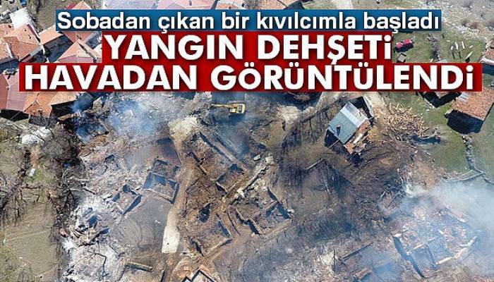 Sobadan çıkan kıvılcımla başlayan ve neredeyse köyün yarısını saran yangının büyüklüğü günün ilk ışıklarıyla ortaya çıktı. Çankırı’nın Ilgaz ilçesine bağlı Serçeler köyü drone ile havadan görüntülendi.