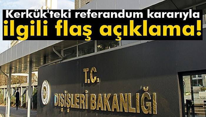 Dışişleri Bakanlığından yapılan yazılı açıklamada, “Kerkük Vilayet Meclisi’nin, Kerkük’ün statüsüne ilişkin referandum konusunu gündemde tutmaya teşebbüs eden bugünkü kararı, toplumsal huzuru tehlikeye atan son derece sakıncalı bir adım olmuştur. Kerkük’ün asli unsurları olan Türkmen ve Arapların katılmadığı bir toplantıda alınan bu kararın meşruiyeti yoktur” denildi.
