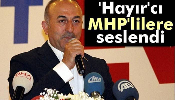 Son olarak ‘hayır’ diyen MHP’lilere seslenen Çavuşoğlu, "Parti içerisinde kırılgan olan MHP’li kardeşlerimiz var. O yüzden hayır diyeceklerini söylüyorlar. Ama bu kişiler arası değil ki, parti de değil. Bu milletin bekası için. Tamam o işi sonra halledelim. Bunu anlattığımda her MHP’li arkadaş da fikrini değiştiriyor. Nefsinize yenilerek dağdaki PKK’lılarla aynı fotoğrafa girmeyin kardeşim" dedi.