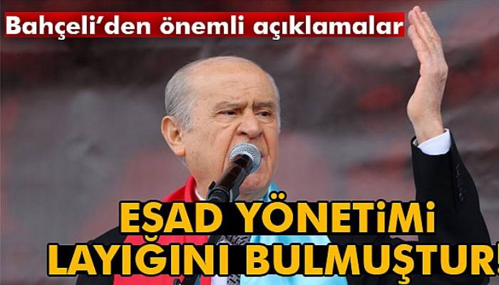 Bahçeli, 16 Nisan referandum çalışmaları kapsamında miting yapmak üzere Afyonkarahisar’a geldi. Cumhuriyet Meydanında gerçekleştirilen mitingde vatandaşlara seslenen Bahçeli, Suriye’ye yönelik ABD’nin, Akdeniz’den yaptığı füze saldırısına değinerek, hareketi olumlu karşıladığını ifade etti. Atılan 59 füze ile Esad’ın sivillere yönelik yaptığı kimyasal gaz saldırısının cevabını aldığını belirten Bahçeli, “Geçtiğimiz günlerde, Esad’a ait savaş uçakları sınırlarımıza 65 kilometre uzaklıkta bulunan İdlib’in Han Şeyhun ilçesine kimyasal silahla saldırmıştır. Aralarında çocuk ve kadınların da bulunduğu çok sayıda sivil katledilmiş, yüzlerce masum yaralanmıştır. Bu insanlık dışı cinayeti Afyonkarahisar’dan lanetliyorum. Peki mazlumlar kimyasal bombalarla öldürülürken insanlık ne yapmaktadır? Birleşmiş Milletler neyle oyalanmaktadır? 16 Nisan’da yapacağımız referandumu bulandırmaya, baltalamaya, tercihleri etkilemeye, algıları yönetmeye kalkışan Avrupa ülkeleri neyle meşguldür? Hani nerede insan hakları? Hani nerede uluslararası hukukun ilke ve kuralları? Esad katil ve insanlık düşmanıdır. Bebeklere kıyan diktatördür, adi bir suçludur. Cani Esad’ın meşruiyet ve ahlaki inandırıcılığı kalmamıştır. Çünkü Esad kana bulanmış, acımasız ve vahşi suçluya dönmüştür. Bu sabaha karşı Doğu Akdeniz’den atılan 59 füzeyle Suriye’nin Şayrat Hava Üssü vurulmuştur. Masumlara alçakça saldıran, bebeklere zehirli gaz fırlatan Esad yönetimi layığını bulmuş, cevabını almıştır. İdlib’in Han Şeyhun ilçesine atılan kimyasal bombaları taşıyan uçak ve konuşlandıkları üs imha edilmiştir. Esad’ın insanlık dışı saldırı ve katliamlarına verilen füzeli karşılık olumlu ve yerindedir ve de Esad Suriye’nin geleceğinden sökülüp atılmalıdır. Türkiye adaletin yanında yer almalıdır. Türkiye sivil ve masum canlara kast eden katillerin tam karşı cephesinde durmalıdır. Zulümle adalet bir arada olmayacaktır. Zulmün olduğu yerde insanlık da bulunamayacaktır” dedi.