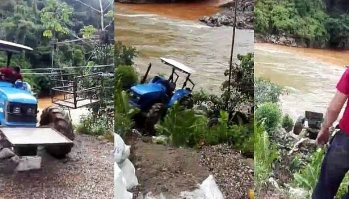 Geri manevra yapan traktör, freninin kilitlenmesi nedeniyle bir türlü duramadı. Sürücü son anda kendini dışarı atarken, araçsa sulara gömüldü. O anlar saniye saniye cep telefonuna yansırken, sürücü ve dostları o anları çaresiz gözlerle izledi.