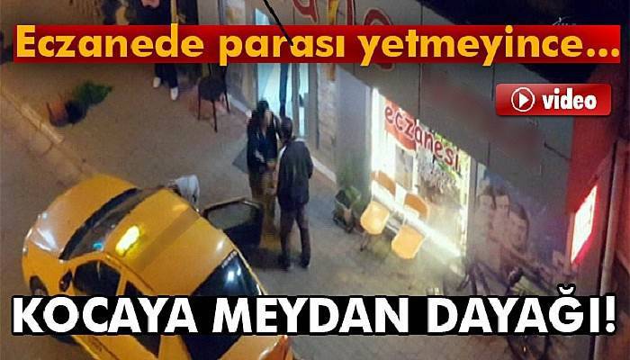 Kocasını çekiştirerek yere düşüren kadın, ayağa kalktıktan sonra elleriyle vurmaya devam etti. Amatör kamera görüntülerinde, birlikte geldiği takside bulunan bir yakının elindeki sebzeleri yere atan öfkeli kadın, daha sonra eczane önündeki süpürgeyi eline geçirip, kocasının üzerine yürümeye devam etti.