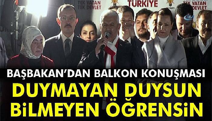 Başbakan Binali Yıldırım, Cumhurbaşkanlığı hükümet sistemi halk oylamasının sona ermesiyle birlikte AK Parti Genel Merkezi'nde balkon konuşması gerçekleştirdi.