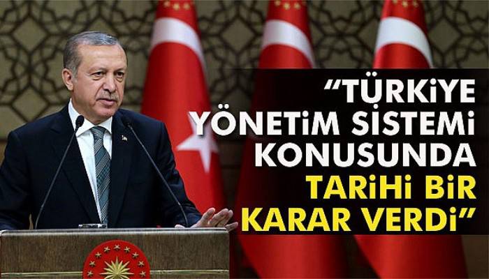 Cumhurbaşkanı Erdoğan, "Türkiye yönetim sistemi konusunda tarihi bir karar verdi." dedi.