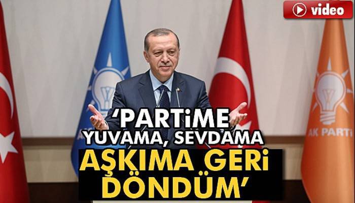 16 Nisan anayasa değişikliği ile cumhurbaşkanlarının parti üyeliği yasasının değiştirilmesi ve yasağın kaldırılması imkanını en güzel şekilde değerlendirdiğini belirten Cumhurbaşkanı Erdoğan, “Partime yeniden üye oluyorum. Bu ayrılık aslında sadece bir resmi ayrılıktı. Aramızdaki mesafe mevzuat gereği olan bir mesafeydi. Gönlümüz hep beraber oldu. Biliyoruz ki, gönüllere sınır çizmek, gönüllere duvar örmek mümkün değildir. Biz hep ‘bu hududu kimler çizmiş gönlüme dar geliyor gardaşım’ dedik ve bugünlere geldik. Olağanüstü kongremizde vedalaşmayı yaparken AK Parti 13 yıllık bir siyasi parti olsa da aslında asırlar öncesinde başlamış olan kutlu bir davanın mirasını omuzlarında taşıyan bir partidir demiştim o gün. Bize asırlar gibi gelse de tarihi süreklilik içinde denizde damla misali olan 979 günlük ayrılığımızın sona eriyor olması beni asıl bu bakımdan heyecanlandırıyor. Milletimiz adına öncülüğünü, hizmetkarlığını üstlendiğimiz bu kutlu yürüyüşü önümüzdeki dönemde daha güçlü ve kararlı bir şekilde sürdüreceğiz. Biz yola milletimizle birlikte çıktık. Bu güne kadar her ne yaptıysak milletimiz için yaptık, yapmaya devam edeceğiz. Bugüne kadar hangi sorunun üstesinden gelmişsek milletimizin duası ve desteği sayesinde geldik. Biz milletimiz için çalıştıkça milletimiz bize daha çok sahi çıktı. Yeri geldi biz milletimiz için gövdemizi siper ettik, yeri geldi milletimiz bizim için gövdesini siper etti. 15 Temmuz bunun çok açık ve net ispatıydı. Türkiye’ye saldıran herkesin bizi hedef almasının sebebi budur. Bazıları sanıyor ki mesele şahsımız, mesele hükümetimiz, mesele partimizdir. Halbuki mesele milletimizdir, mesele ülkemizdir, mesele devletimizin ta kendisidir. Mesele bağımsızlığımızdır, hedeflerimizdir, iddialarımızdır. Biz de milletimiz de bu gerçeği çok iyi biliyoruz. Bu anlayışla gecemizi gündüzümüze katarak ekonomiden altyapıya, güvenlikten adalete kadar her alanda elimizden gelenin en iyisini yapmaya çalıştık, çalışıyoruz ve çalışacağız” diye konuştu.