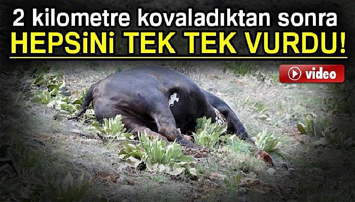 Araçla danaların peşine düşen besici ve akrabaları, tüm çabalarına rağmen hayvanları durduramadı. Çaresiz kalan besici, hayvanları tüfekle vurup yaralayarak durdurmayı denedi. Danalardan 1’i yol kenarında vuruldu. Diğer 3 dana ise Şardağı eteklerinde 5’er metre aralıklarla vurularak durdurulabildi. Vurulan danalar, kasap yardımıyla kesildi.