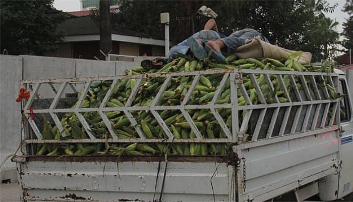 Yüreğir ilçesi, Yenidoğan Mahallesi, Yaşar Doğu Caddesi'nde mısır yüklü bir kamyoneti süren baba 3 kişiyi yanına oturtunca yer kalmadığı için iki çocuğunu da kamyonet kasasına çıkarttı. Kasa tamamen mısır ile dolu olduğu için çocuklar mısırların üzerine uzanarak yolculuk yapmak zorunda kaldı. En küçük bir sarsıntıda düşme tehlikesi bulunan çocuklar görenlerin şaşkın bakışları arasında yolculuklarına devam etti.