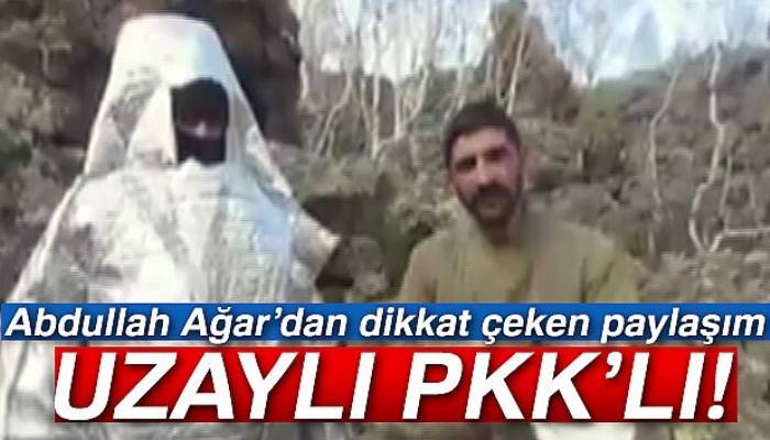 Ağar paylaştığı videoya “Operasyonlarda yakalanan yüzlerce m2'lik alüminyum folyonun nedeni: PKK'nın termal tespite karşı geliştirmeye çalıştığı taktik. Sonuç: YPG'li, DSG'li PKK'lıdan sonra UZAYLI PKK'lı... Elinde M-16'sı ile.” notunu düştü.