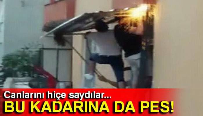 Bir vatandaşın cep telefonuyla kaydettiği 'bu kadarına da pes' dedirten olay, merkez Akdeniz ilçesi Hamidiye Mahallesi'nden yaşandı. Görüntülere göre, 5 katlı apartmanın 3'üncü katındaki evin balkon penceresine çinko gölgelik monte etmek isteyen şahıslar, hiçbir güvenlik tedbiri almadan kaynak yapmaya başladı. Balkon demirinin üzerine çıkan 2 kişi, başlarının üzerine koydukları çinko gölgeliği elleri ile desteklerken, içerideki şahıs ise kaynak makinesi ile demire kaynak yapmak istedi. Kaynak işlemi sırasında ortaya çıkan kıvılcımlar sonrası çinko gölgelik şahısların ellerinden kayıp büyük bir gürültü ile aşağı düşerken, dengelerini kaybedip sendeleyen 2 kişi ise düşmekten son anda kurtuldu.