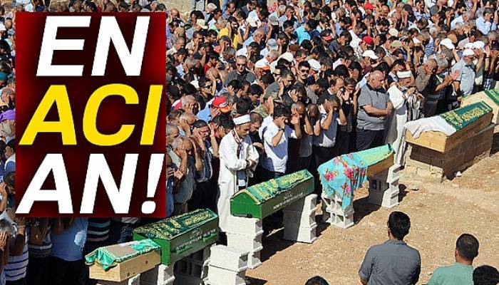Öğleden sonra Gaziantep Adli Tıp Kurumu Morgundan alınan baba Adnan Erdoğan (35), eşi Fatma Erdoğan (35) ile çocukları 10 yaşındaki Melisa, 8 yaşındaki Müslüm, 5 yaşındaki Yakup ve 6 aylık Yusuf’un cenazeleri, memleketleri Şanlıurfa’nın Halfeti ilçesine bağlı Aşağı Göklü kırsal Mahallesi’ne getirildi. Gözyaşları arasında araçlardan indirilen tabutlar omuzlara alınarak, namazın kılınacağı alana götürüldü. Yan yana dizilen tabutları gören yakınları gözyaşlarına hakim olamayarak sinir krizleri geçirdi. Cenazeler, Vali Abdullah Erin’in de katıldığı namazın ardından mahalle mezarlığında yan yana defnedildi.